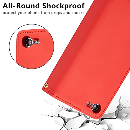 EYZUTAK Custodia per iPhone 7 Plus, iPhone 8 Plus, 2 in 1, in pelle PU, con chiusura magnetica, 9 scomparti per carte di credito, tasca e chiusura lampo, colore: rosso