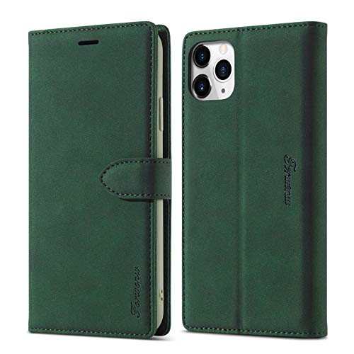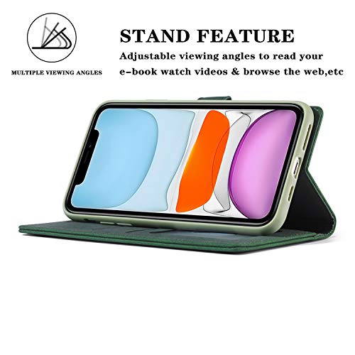 EYZUTAK Custodia per iPhone 11 6,1 pollici, Vintage Wallet Folio Flip Cover Full Cover Custodia In Pelle Premium Con Chiusura Magnetica Cavalletto Slot Per Schede - Verde Scuro