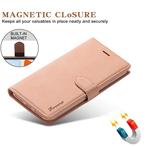 EYZUTAK Custodia per iPhone 7, iPhone 8, iPhone SE 2020, Vintage Wallet Folio Flip Cover Full Cover Custodia In Pelle Premium Con Chiusura Magnetica Cavalletto Slot Per Schede - Oro Rosa