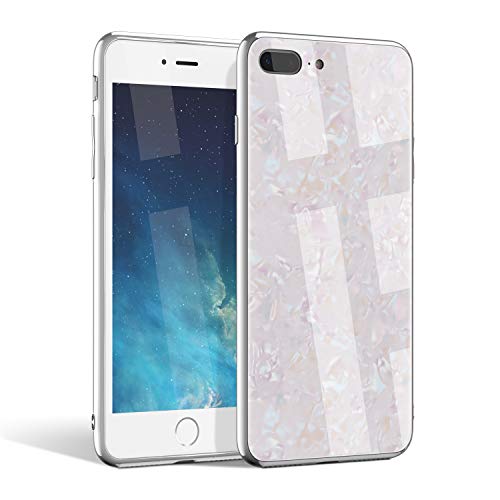 EYZUTAK - Custodia protettiva per iPhone 7 Plus 8 Plus, ultra sottile in vetro temperato con protezione dello schermo in vetro temperato, placcatura antigraffio in TPU, antiurto, per iPhone 7 Plus/8 Plus, colore: Bianco