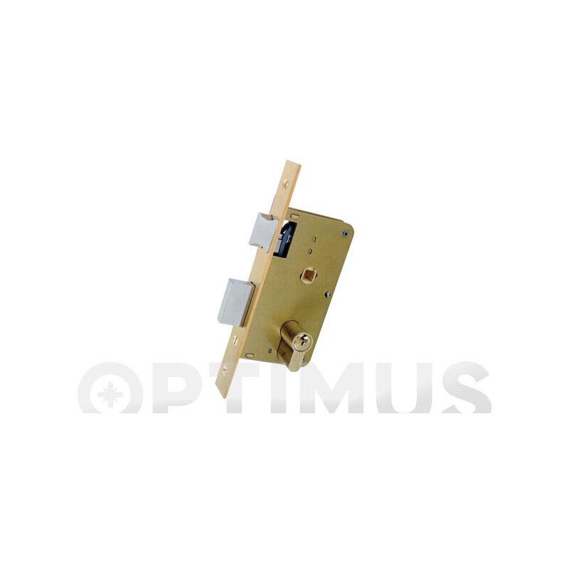 Serratura per porte in legno. Entrata 50 mm. Interasse 35 mm. Frontale in ottone. Fornita con cilindro da 60 mm e tre chiavi con dado.