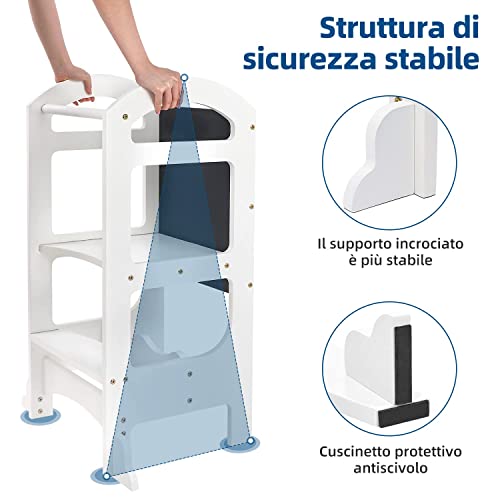 Ezebaby Torre Montessoriana Trasformabile per Bambini, Torre di Apprendimento con Lavagna, Learning Tower in Legno, Pedane Alzabimbo Trasformabile in Banco Scuola, Torretta - 2 in 1