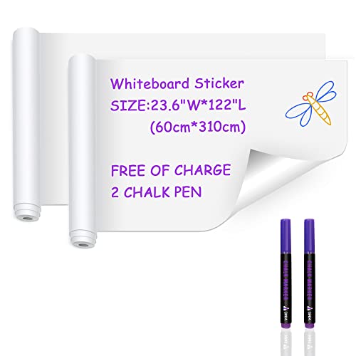 Ezigoo Lavagna Adesiva Bianca - Lavagna Bianca Autoadesiva Da Parete 60 X 310 Cm, Rullo Memo Da Parete Per Ufficio, Casa O Scuola, Con 1 Pennarello A Gesso Liquido Lavagna Bianca Adesiva Per Muro
