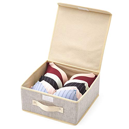 EZOWare Cesto Pieghevole Contenitore Portaoggetti con Coperchio Cassetto Deposito per Vivaio, Armadio e Camera da Letto - Confezione da 4 (26.7 x 26.7 x 12.7 cm) (Grigio e Beige)