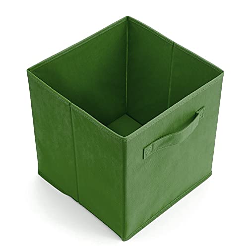 EZOWARE Confezione da 6 Cubi Portaoggetti Pieghevoli in tessuto, Contenitore con manico per Bambini cameretta o sala giochi Giocattoli Vestiti, 26.7 x 26.7 x 27.8 cm / Colore: Verde Kale