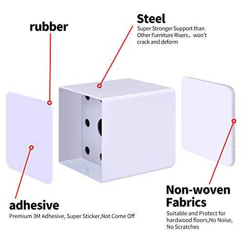 Ezprotekt Rialzi per Letto Rialzi per Mobili Resistenti per Divano, Tavolo, Divano, Altezza di Sollevamento di 2 pollici,Solido Acciaio Che Offre un Forte Supporto, set di 4, Piazza Bianca