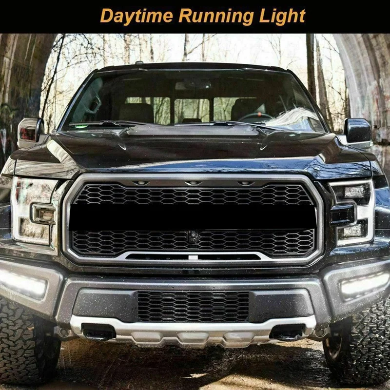 For Ford F-150 Raptor / Ranger Raptor 2017-2019 Front Bumper Bezels L+R LED DRL with Turn Signal Fog Light Lamp