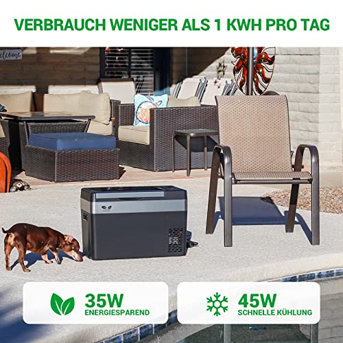 【Consuma 1 kWh al giorno】: il frigorifero da 12 V dispone di due modalità per opzioni, tra cui Max (raffreddamento rapido) ed Eco (risparmio energetico). La potenza nominale è di 45 W, il che significa che il frigorifero da viaggio consuma meno di 1 kWh ogni giorno, il che è a risparmio energetico e relativamente ecologico. Con anti-30°, il frigorifero per camion può funzionare normalmente anche su strade accidentate.