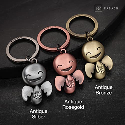 FABACH Portachiavi con angelo custode Happy con volante, grazioso ciondolo a forma di angelo in metallo, regalo portafortuna, patente di guida auto, guida con attenzione, Bronzo antico, taglia unica