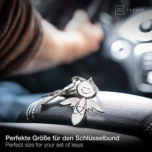 FABACH Portachiavi con angelo custode Smile con cuore - elegante ciondolo a forma di angelo in metallo in argento, oro, rosa, nero, bronzo - regalo portafortuna auto patente - guida con cautela