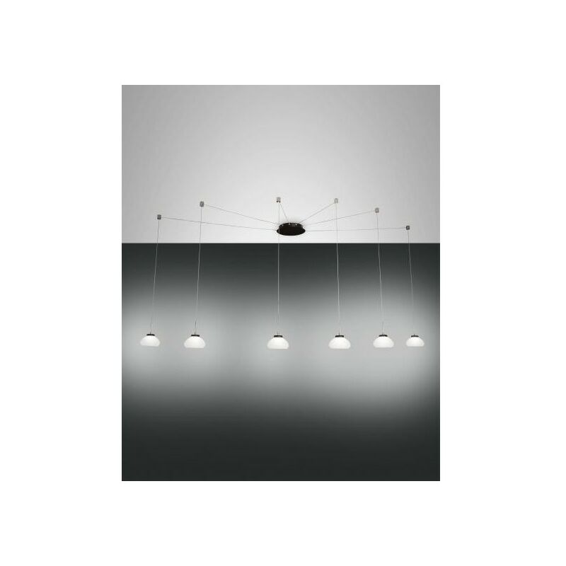 Lampadario a sospensione a led Arabella moderno da 48W, composto da un rosone nero e sei diffusori in vetro soffiato bianco. Lampadario a sospensione a led con cavo regolabile in lunghezza e supporti per decentramento,350cm. lampadario a sospensione a led moderno dimmerabile che da la possibilità di variare l'intensità della luce con un dimmer non incluso. Disponibile la dimmerazione con sistema bluetooth. Ideale da installare nelle abitazioni moderne anche come prodotto di arredo, in stanze come salotti, cucine o studi. Lampadario a led a sospensione con un design moderno molto apprezzata da interior designer, architetti e progettisti. Plafoniera a led perfetta per arredare studi professionali, uffici, negozi o showroom.La lampada di colore bianco si adatta in tutti gli ambienti. Su richiesta e un'aggiunta di prezzo è possibile avere la plafoniera a led regolabile con un applicazione via bluetooth, con Alexa e Google Home. Per informazioni inviare una mail a: ordini@sololed.it Questo