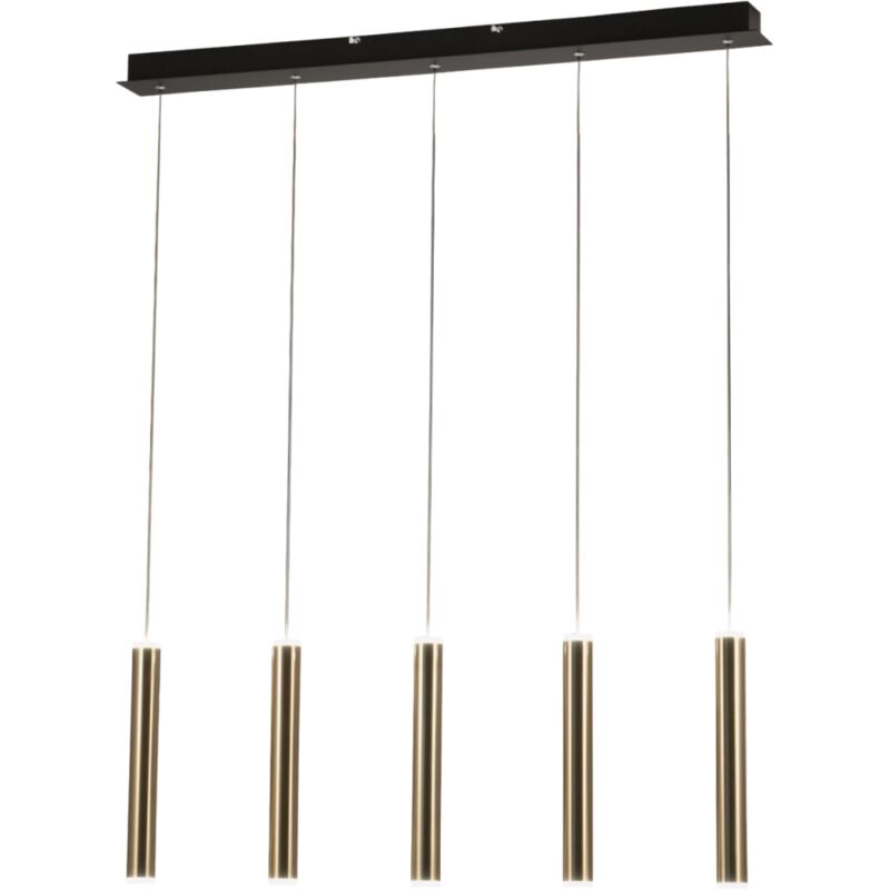 Fabas Luce Prado Plafoniera LED a barra dritta a sospensione in vetro nero / ottone satinato | Finitura: nero, ottone satinato | Materiale: struttura in metallo e metacrilato | Grado di protezione IP: IP20 | Altezza massima: 200 cm | Lunghezza: 90 cm | Larghezza: 8 cm | Tipo di lampada: LED integrato | Lampadina inclusa: Sì | Kelvin: bianco caldo | Lumen: 3600lm | Peso: 3,6 kg | Potenza (max): 40 W