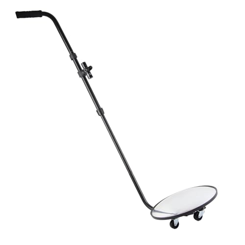 LEGGERO E DUREVOLE: lo specchio di ispezione sotto l'auto adotta specchio infrangibile acrilico ad alta resistenza da 30 cm di diametro, effetto di ingrandimento convesso 2X, pesa 1/2 di un normale specchio di vetro della stessa dimensione, ha una certa tenacità, non facile da rompere, sicuro e durevole, luminosità è lo stesso dello specchio di vetro. Il fondo e l'ambiente circostante in gomma dura possono prevenire efficacemente i danni allo specchio causati dalla collisione