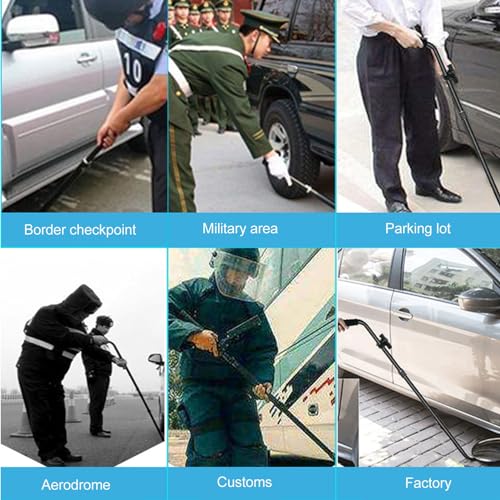 FLESSIBILE E IN PROFONDITÀ: L'altezza minima rilevabile dello specchietto di sicurezza per l'ispezione sotto il veicolo è di 10 cm, l'asta di presa è un tirante telescopico e il design del giunto ribaltabile anteriore e posteriore a 170 gradi può massimizzare la profondità del veicolo e degli oggetti rilevati