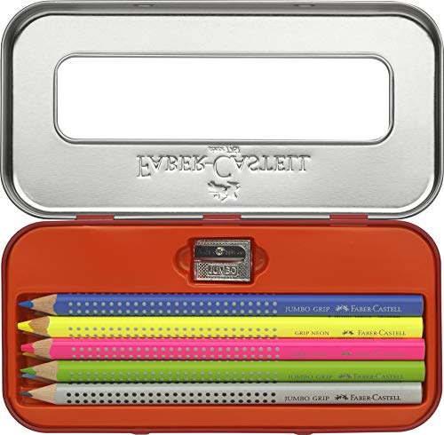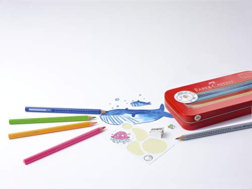 Faber-Castell 110908 - Set di matite colorate Jumbo Grip per il mondo sottomarino, in astuccio di metallo