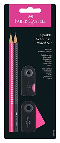 Faber-Castell 218496 - Set matite Grip Sparkle con 2 matite, 1 gomma per cancellare e 1 temperino, colore: Fucsia/Nero