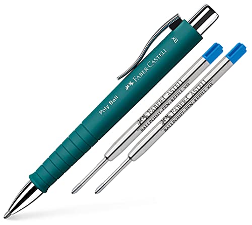 Faber-Castell - 2 penne a sfera “Poly Ball XB”, colore del fusto: verde smeraldo + 2 mine di ricarica blu, tratto di 0,5 mm