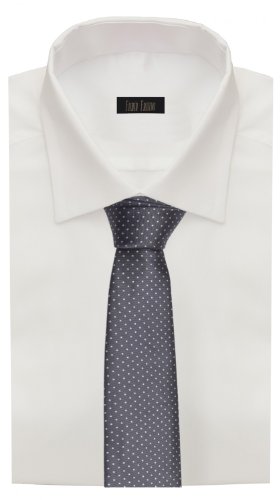 Fabio Farini - Elegante cravatta da uomo a pois di 6 e 8 cm di larghezza per ogni occasione come matrimonio, cresima, ballo di fine anno grigio bianco 8cm