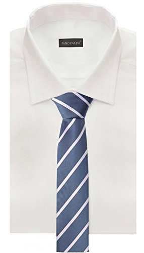 Fabio Farini - Elegante cravatta da uomo a strisce in 6cm di larghezza in diversi colori per ogni occasione come matrimonio, cresima, ballo di fine anno Blu Bianco
