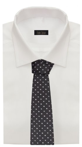 Fabio Farini - Elegante e setosa cravatta da 8 cm di larghezza con puntini per ogni occasione nero grigio bianco