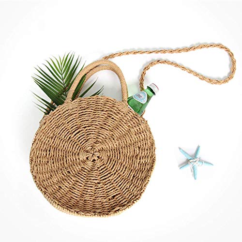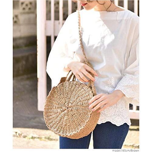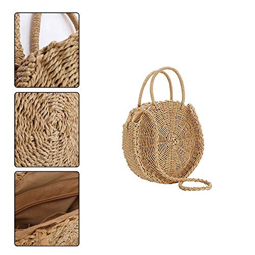 Fablcrew - Borsa a tracolla in paglia da donna, rotonda, estate, spiaggia, con tracolla e borsa a mano, in rattan, con chiusura a zip