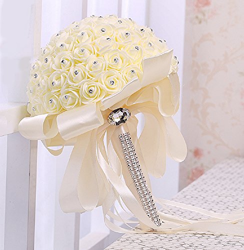 Fablcrew - Bouquet da sposa in schiuma artificiale, con strass, per damigelle, colore: beige