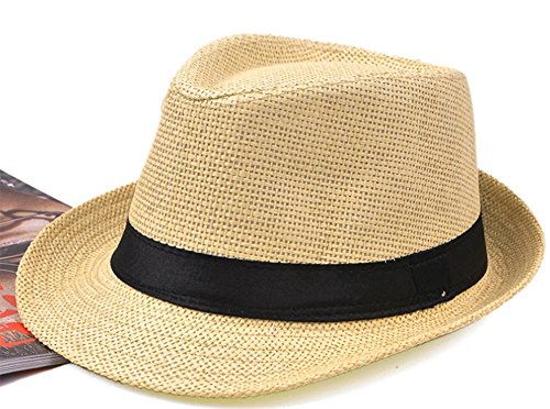 Fablcrew, cappello panama di paglia, cappello da sole unisex pieghevole estivo a tesa larga, da spiaggia, per uomo e donna, Beige, 56-58 cm