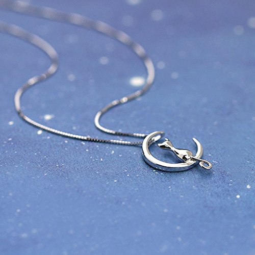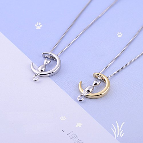 Fablcrew - Collana con ciondolo donna - gatto di argento in piedi sulla Luna - lega - 45 cm