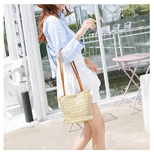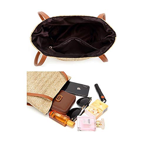 Fablcrew. Donne Estate Elegante Semplice Borsa da Spiaggia Borse di Paglia Tempo Libero Vacanze Borsa A Tracolla Sacchetto Tote di Viaggio (Marrone)