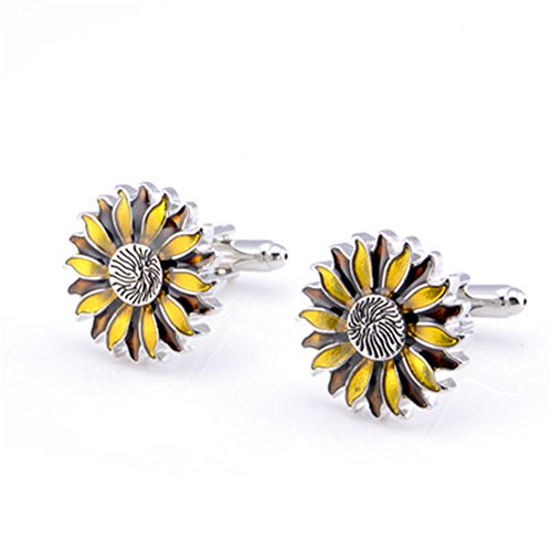 Fablcrew 1 Paia Gemelli da Polso a Forma di Fiore di Sole in Acciaio Inox Camicia di Polsino per Uomo Matrimonio Business Commerciale