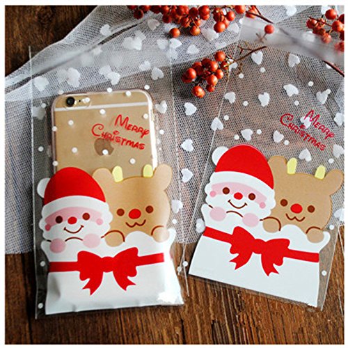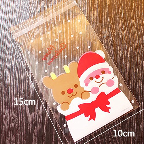 Fablcrew Sacchetti Trasparenti Forma di Babbo Natale per Conservare e Confezionare Caramelle Colci e Cioccolatini 100 Pezzi a Set