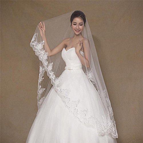 Fablcrew, velo da sposa con bordo ricamato, elegante lungo gomito, velo da sposa per donne
