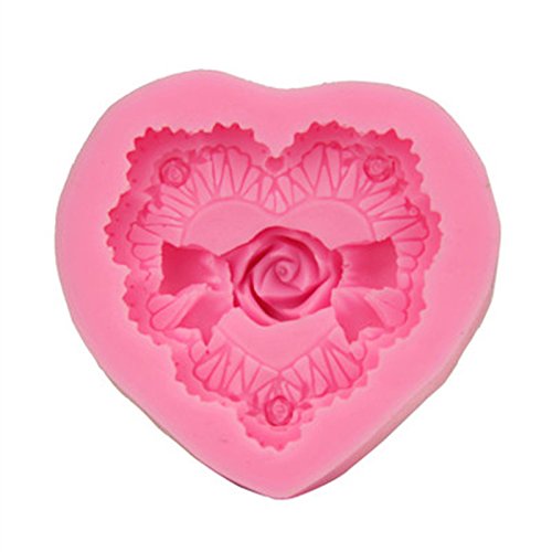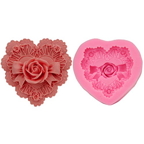 Fablcrew Stampo in Silicone per Torte a Forma di Cuore con Rosa, Accessori per la Pasticceria
