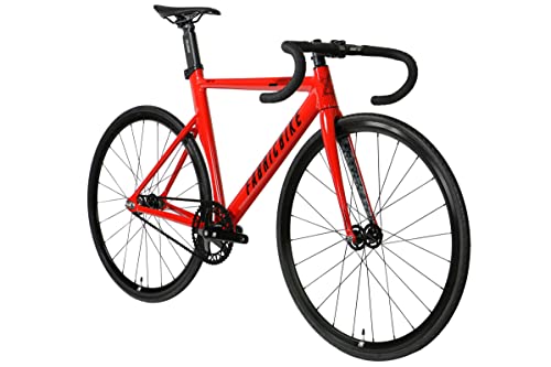 FabricBike AERO - Fixed Gear Bicicletta, Single Speed Fixie Completa mozzo, Telaio in Alluminio e Forcella in carbonio, Ruote 28, 5 Colori, 3 Dimensioni, 7.95 kg (Taglia M) (Red & Black, L-58cm)