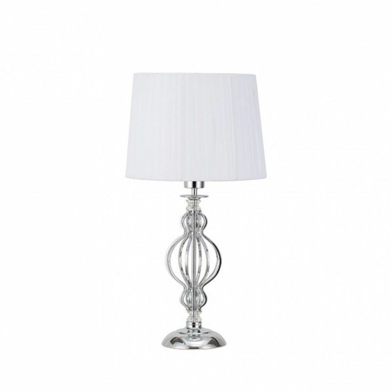Piano tavolo serie Nazareno in colore CROMO con schermo bianco. Realizzato in metallo e paralume in tessuto. Il corpo del piano del tavolo è caratterizzato dall'originale design traforato con una sfumatura plissettata che lo rende ideale per decorare e illuminare qualsiasi ambiente. Ha una misura di 56x30x30 cm. Il portalampada è E27. Lampadina non inclusa. È disponibile anche nel colore Leather con una sfumatura beige.