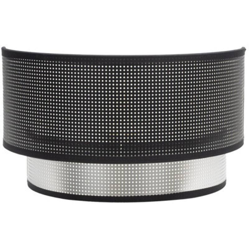 Applicazione della serie ANASTASIA con due corpi realizzati in tessuto traforato NERO/ARGENTO. Ha un portalampada E27. Lampadina non inclusa. I suoi schermi perforati si distinguono. Stile molto originale e moderno, ideale per decorare e illuminare ingressi, soggiorni, uffici e camere da letto, aggiungendo raffinatezza alla stanza che illumina. Adatto a decori industriali, molto coerente anche con stili moderni che hanno come elemento caratterizzante l'illuminazione. Ha dimensioni di 17x30x15 centimetri. In questa serie possiamo trovare sospensioni di 50, 40 e 30 centimetri di diametro, due diverse dimensioni di piani da tavolo, applique, plafoniere da 48, 72 e 96 watt e la lampada da terra, tutte combinando il metallo delle loro cornici nere con il forato tessuto dei suoi paralumi nero/argento.