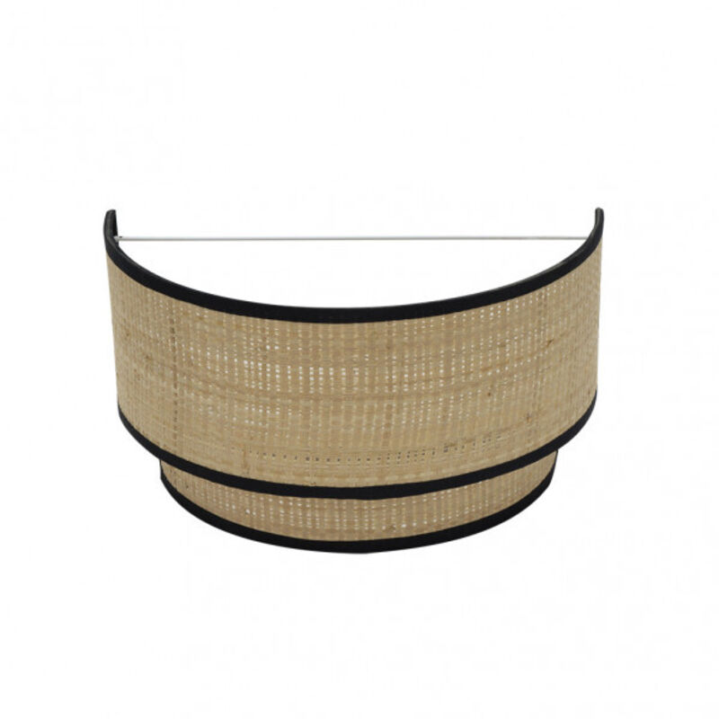 Applicare la serie ROQUE nel colore NATURALE/NERO. Ha un portalampada E27. Lampadina non inclusa. Formata da due corpi in tessuto. Le sue dimensioni sono 17x30x15 centimetri. In questa serie possiamo trovare pendenti di 60, 50 e 40 centimetri di diametro, due diverse dimensioni di piani da tavolo e applique, tutti realizzati in juta naturale bordata di nero, rosso o marrone.