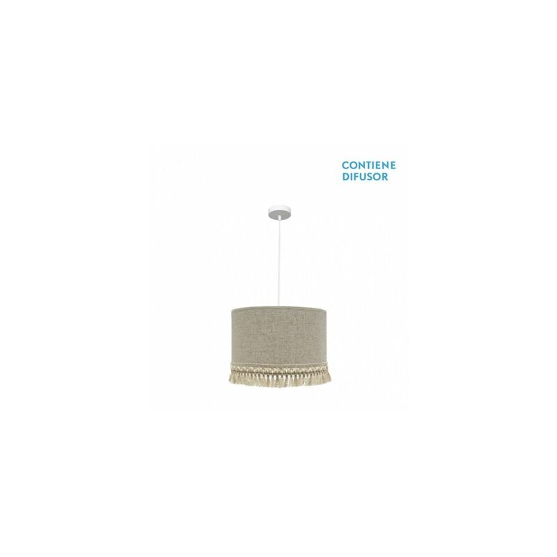 Pendente degli anni '80Serie VERA colore BIANCO/BEIGE. Ha tre preseper E27. Lampadine non incluse. Con paralume cilindrico realizzato in tessuto di lino rigato e terminante con una bellissima passamaneria sfrangiata. Dallo stile moderno e dal design elegante, ideale per arredare e illuminare camere da letto, ingressi, soggiorni e soggiorni, donando calore all'ambiente che illumina. Ha dimensioni, regolabili in altezza, di 58