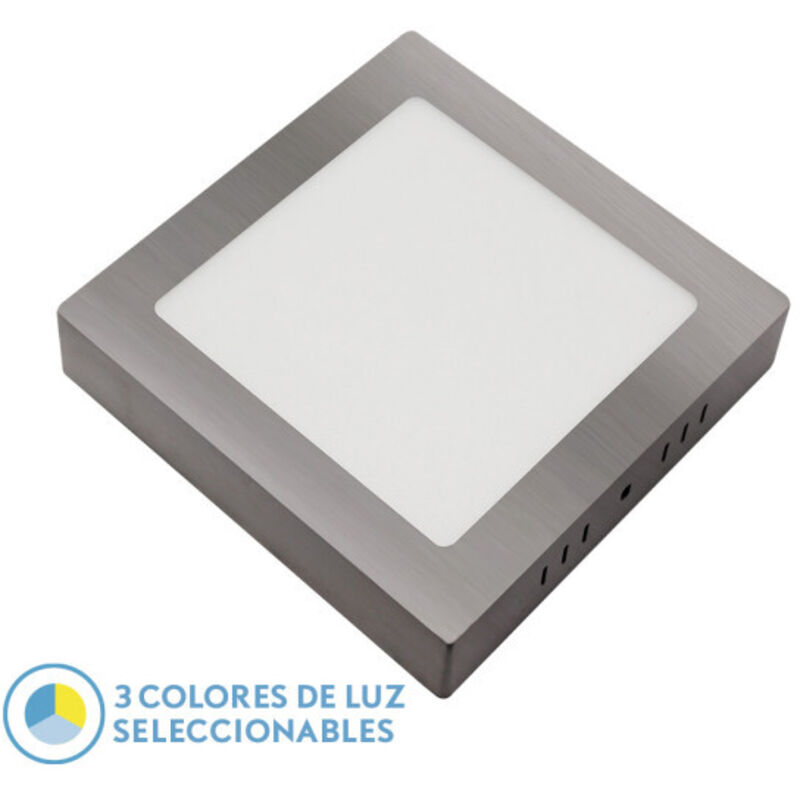 Downlight a superficie quadrata della serie GABRO in colore NICKEL. Realizzato in alluminio e policarbonato, con misure di 3,5x29x29 centimetri. Dispone di LED INTEGRATO con una potenza di 24 watt, 2160 lumen e SELEZIONABILE IN FASE DI MONTAGGIO in TRE TEMPERATURE DI LUCE, 3000-4000-6500K (luce bianca calda, naturale o fredda). In questa serie possiamo trovarli da 24, 18 e 12 watt, con una temperatura di 3000-4000-6500K, e disponibili sia in bianco che nickel.