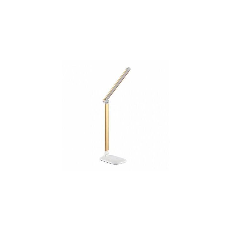 Collo d'oca a led della serie TRAVIATA colore ORO/BIANCO. Realizzato in alluminio, acrilico e policarbonato. Dal design moderno ed elegante dalle linee rette, ideale per qualsiasi tipo di studio, lettura o tavolo da lavoro. TOUCH ON e OFF, cambiando il colore della luce con piccoli tocchi o variando l'intensità tenendo premuto. Ha una potenza di 7 watt, 525 lumen e tre colori di luce, 3000, 4000 e 6200k (luce calda, bianco naturale o bianco freddo). Con REGOLATORE DI INTENSITÀ della luce per raggiungere l'intensità desiderata in base all'attività da svolgere, un tipo di lampada altamente raccomandato per il riposo degli occhi. PIEGHEVOLE, con la possibilità di ottenere l'angolo di illuminazione ideale, e leggero, che lo rende anche molto utile per il trasporto e lo stoccaggio. Ha una dimensione di 54x11,5x31 centimetri, anche se può essere piegato e aperto completamente. Modello disponibile anche in argento/bianco.