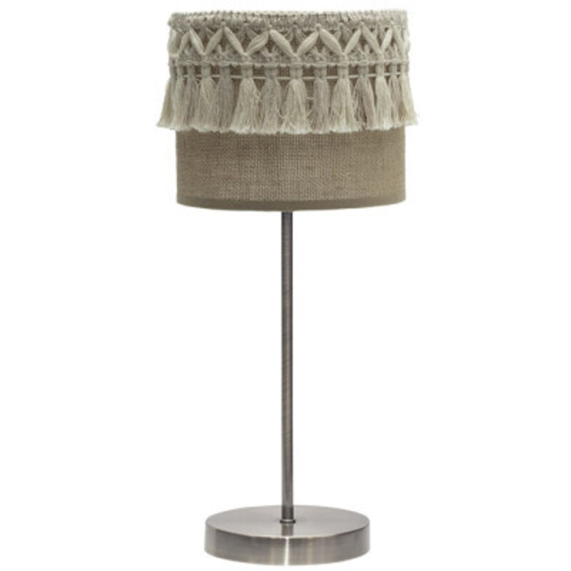 Piano tavoloanni sSerie EKATERINA colore PELLE con paralume in tessuto SACO. Ha una presaper E14. Lampadina non inclusa. Si caratterizza per il suo originale paralume, realizzato con bellissime passamanerie in filo beige, che fornisce un design esclusivo e molto elegante per camere da letto, ingressi, salotti e salotti, abbinandosi a molteplici stili di arredamento, dal rustico al vintage, moderno o classico. Ha dimensioni di 43x17x17 centimetri. In questa serie possiamo trovare un'ampia varietà di articoli come i pendenti da 60, 50, 40 e 30 centimetri di diametro, due diverse dimensioni di piani da tavolo, applique, plafoniere da 48, 72 e 96 watt e la lampada da terra, il tutto combinando il tessuto di sacco con pelle o bianco.