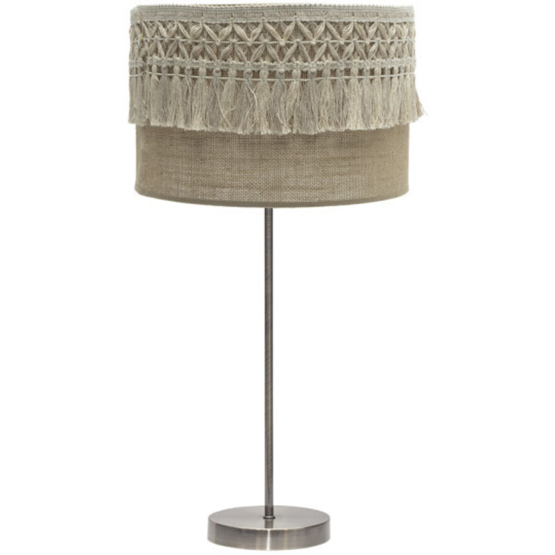 Grande lampada da tavolodella serie SEKATERINA in colore PELLE con paralume in tessuto SACO. Ha una presaper E27. Lampadina non inclusa. Si caratterizza per il suo originale paralume, realizzato con bellissime passamanerie in filo beige, che fornisce un design esclusivo e molto elegante per camere da letto, ingressi, salotti e salotti, abbinandosi a molteplici stili di arredamento, dal rustico al vintage, moderno o classico. Ha dimensioni di 63x30x30 centimetri. In questa serie possiamo trovare un'ampia varietà di articoli come i pendenti da 60, 50, 40 e 30 centimetri di diametro, due diverse dimensioni di piani da tavolo, applique, plafoniere da 48, 72 e 96 watt e la lampada da terra, il tutto combinando il tessuto di sacco con pelle o bianco.