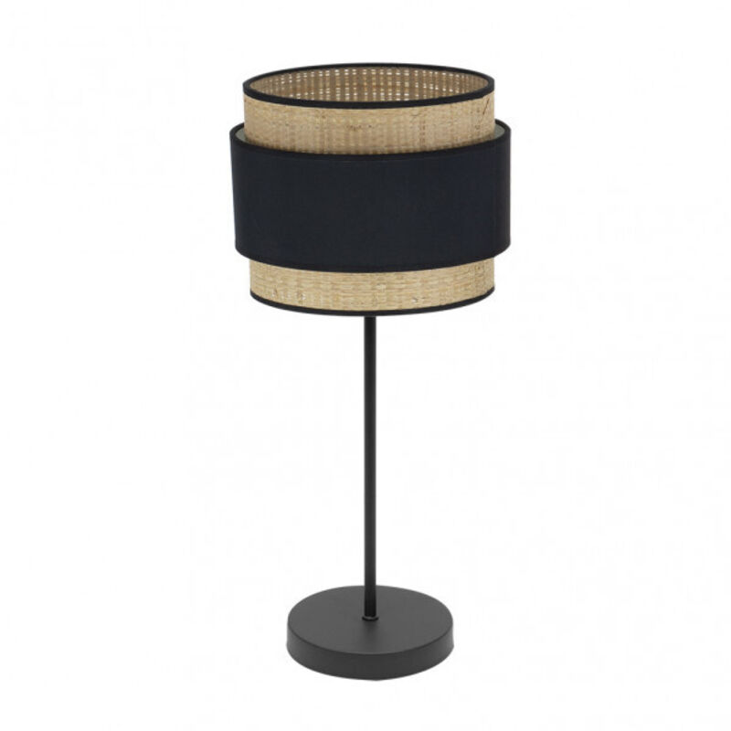 Lampada da tavolo Alto della serie KANDY in colore NATURALE/NERO. Ha un portalampada E27. Lampadina non inclusa. Schermo formato da due corpi in tessuto e corpo in metallo. Dallo stile moderno e dal design elegante, ideale per arredare e illuminare qualsiasi angolo di camere da letto, soggiorni e corridoi, donando calore all'ambiente che illumina. Le sue dimensioni sono 67x30x30 centimetri.In questa serie possiamo trovare le sospensioni di 60, 50, 40 e 30 centimetri di diametro, due diverse dimensioni di piani da tavolo, le applique, la striscia con tre pendenti e la plafoniera con tre ciondoli, tutti combinano juta naturale con tessuto in bianco, nero, grigio o marrone.