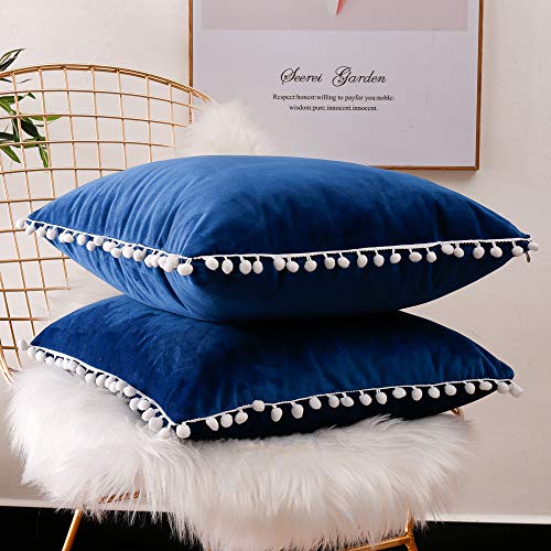 FabThing Federe Cuscini Divano Velluto Fodere Cuscini Decorativi Copricuscini Vintage Moderno per Salotto Letto Casa 2 Pezzi 45x45cm Blu Scurso