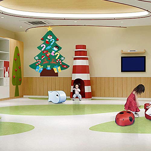 Questo bellissimo albero di Natale è realizzato interamente in feltro di alta qualità con cuciture super doppie che possono essere attaccate a qualsiasi parete con una pratica corda. L'albero di Natale e gli accessori da 30 pezzi sono dotati di un adesivo che si aggancia rapidamente sull'albero di feltro ed è facile da rimuovere e spostare, rendendolo meno soggetto a cadute.