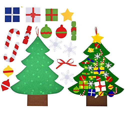 Faburo Feltro Albero Natale, Albero di Natale in Feltro per Bambini 100cm della Feltota di DIY con 30pcs Ornamenti Staccabili con 300cm Ornamenti LED Regali di Natale