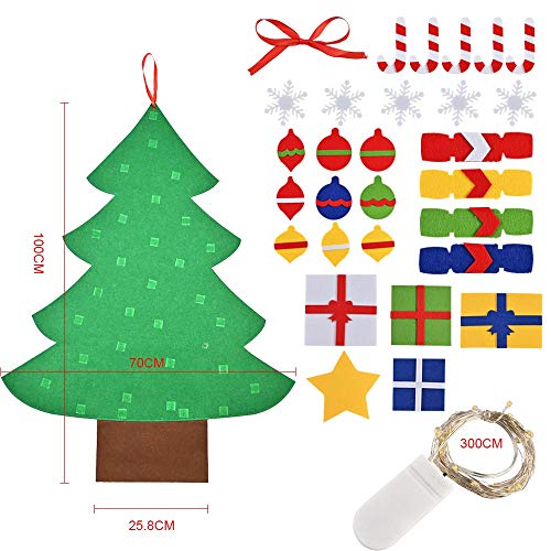 Confezione: 1 * Albero di Natale in feltro (100 cm * 70 cm), ornamento da 30 pezzi, ornamento da 300 cm LED.