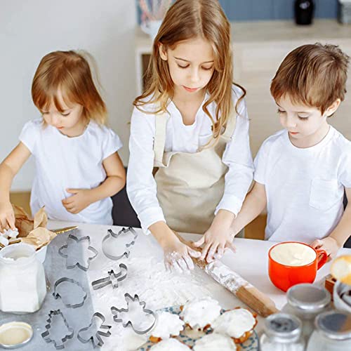 Faburo 7PCS Formine per Biscotti Natale, 3D Formine Biscotti in Acciaio Inox, Formine per Pasticcini - Renna, Albero di Natale, Babbo Natale, Guanti, Fiocco di Neve, Candy Cane, Omino di Marzapane
