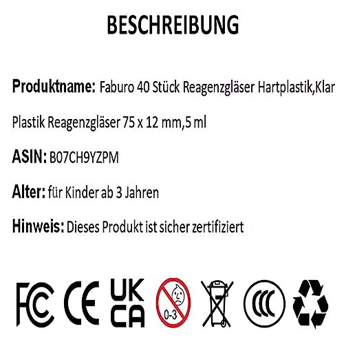 Faburo - 40 provette in plastica dura, trasparenti, 75 x 12 mm, 5 ml