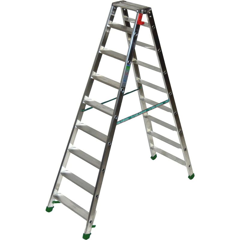 Ecco la scala a doppia salita DUPLA con scalini da entrambi i lati fissati ai montanti con doppio passaggio idraulico senza rivetti . Questo modello D8 ha 8 gradini + pianetto, un pratico appoggio di seduta che permette di lavorare con le mani libere in sicurezza. DUPLA è leggera e non ingombrante. La profondità degli scalini di 85 mm. la rende una scala particolarmente sicura e utilizzabile da professionisti per un uso intensivo. Grazie anche alla tecnologia e alle tecniche applicate come i monoblocchi delle cerniere in alluminio fuso che legano i pianetti d'appoggio ai montanti in unico corpo con viti passanti, fanno di DUPLA uno strumento indispensabile per i professionisti mettendo loro a disposizione sette misure da 5 a 12 gradini. Due pratiche linguette alla base dei montanti, in mescola di nylon e resina, permettono di mantenere in asse la scala quando è chiusa. Scheda tecnica Altezza al pianetto: 199 cm. (A) scala chiusa: 215 cm. (H) raggiungibile con operatore alto 1,70 mt.